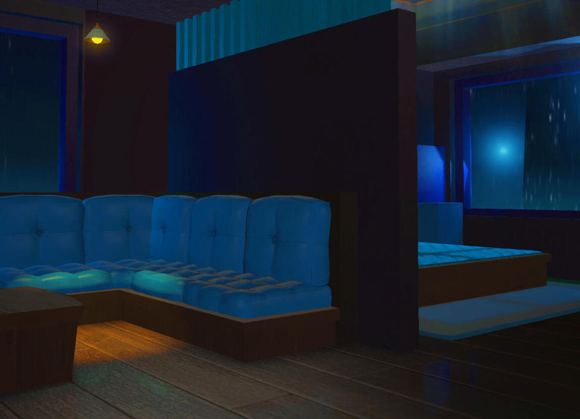 it would be silly for our venue to not have a room of hingan influence, especially with how tight-knit we are with the culture. this cozy little room is placed within the center of a nighttime garden, so you can see the serene nature outside while you rest your weary bones... or, you know, get freaky.